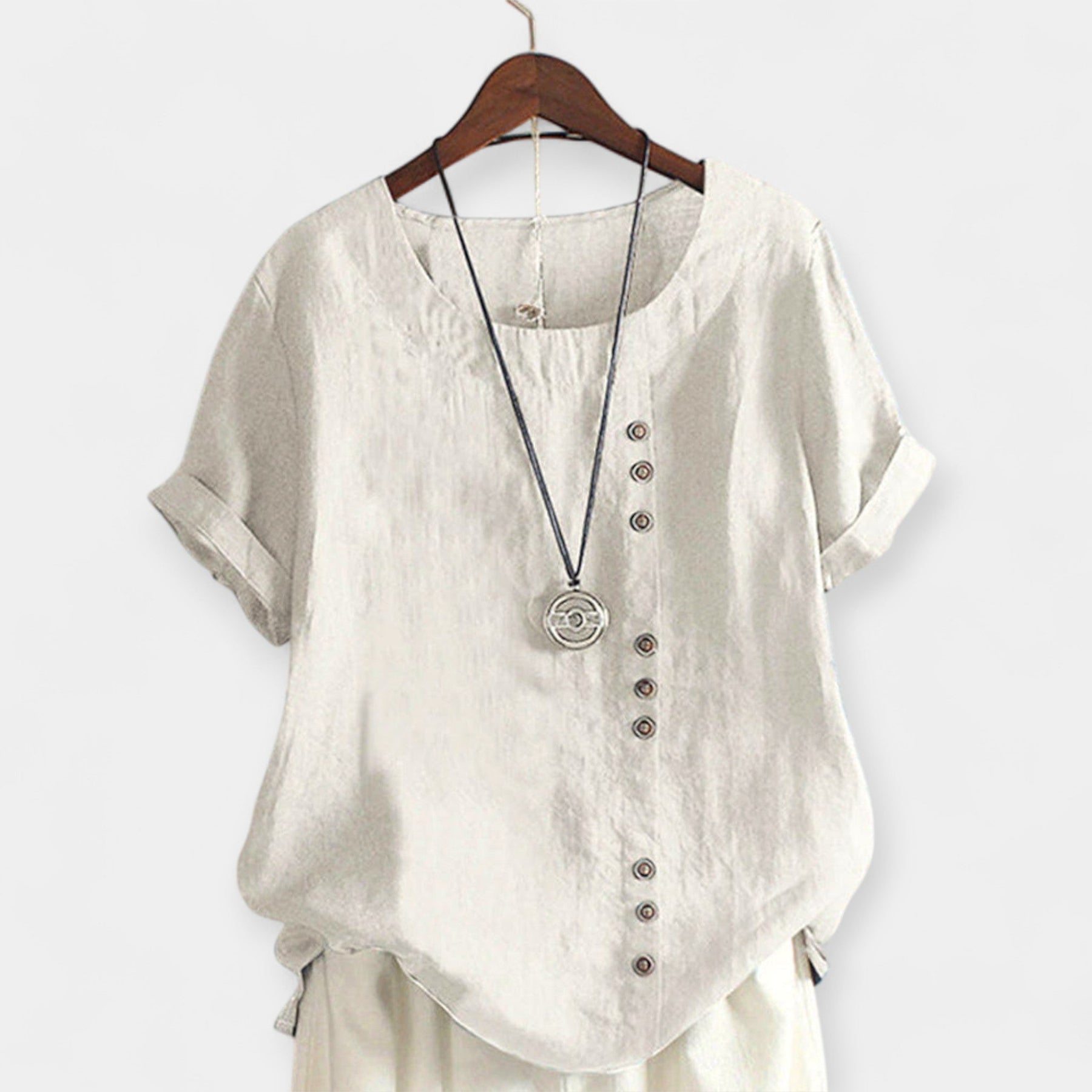 • Elegantne ja ajatu disain nööpide ja ümmarguse kaelusega, mis sobib igasse olukorda.